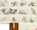 金农《花果册》画花果十二开,皆水墨,多折枝写生,更以瘦劲之笔落墨而成。每页皆有诗题,书法亦秀瘦,一反常见拙重之态,为其画中别调,乃心境闲适时用意之作。以48,300,000元成交。