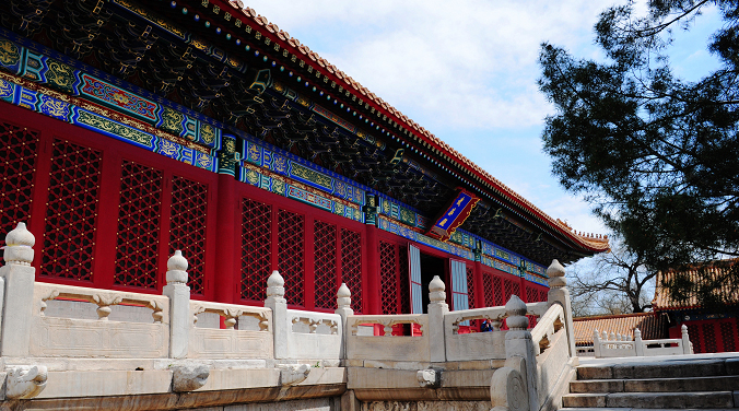 武英殿现在是故宫博物院书画馆,但除了举办书画展览,平时并不开放,只能透过武英门,窥见它武英的一角。武英门前有御河环绕,河上有一石桥,桥上雕刻极精。周围是一片树木,有古槐十八棵,在宫墙的映衬下,显得格外苍古。那一份清幽,在极少树木的紫禁城里显得格外珍贵。每逢上班,从拥挤的地铁、嘈杂的人群中挣脱出来,从西华门一进故宫,我都会向那片树林行注目礼,或者干脆走进去,听一听树枝上叽喳的鸟鸣。树枝上的鸟鹊,有时会轰然而起,飞向天空,像一把种籽洒向田野。它们绕着宫殿的鸱吻、觚棱盘旋,又成群结队地落下来。也有时,下班前,我会在那里驻足片刻,看暮色一点点地披挂下来,笼罩整个宫殿。那时,武英殿漆黑的剪影就像一只倒悬的船,漂浮在深海似的夜空下。很多年前,也是薄暮降临的时分,就在我站立的地方,站着大清王朝军机大臣曾国藩,忙中偷闲,留下一首《腊八日夜直》诗,其中有这样两句: