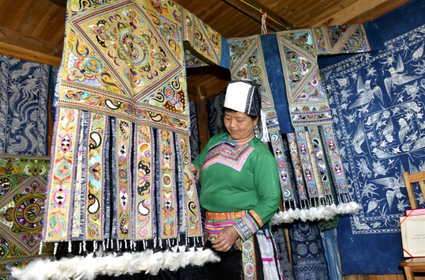 近年来,当地积极挖掘苗族刺绣、蜡染等“非遗”技艺,通过“合作社+农户”的方式,带动村民家家户户都从事苗族传统刺绣、蜡染手工制品生产与外销,实现“非遗”传承与市场对接。2015年,乌吉苗寨80余农户制作的传统手工艺品销售收入近100万元,传统“非遗”成为当地苗族群众脱贫致富的重要途径。