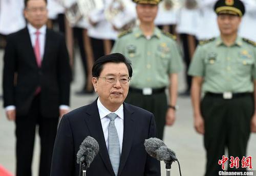 5月17日,中共中央政治局常委、全国人大常委会委员长张德江抵达香港,出席香港特区政府主办的“一带一路”高峰论坛,并视察香港特区。中新社记者 张宇 摄