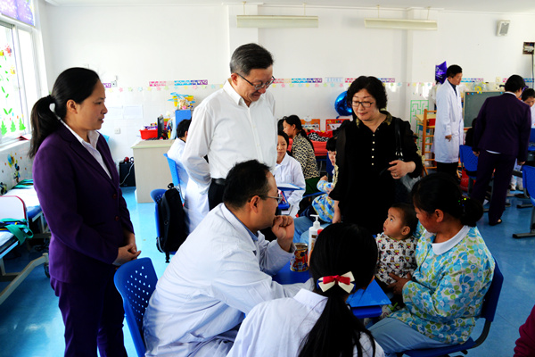 5月17日上午,民进浙江省委会组织医卫专家赴杭州市儿童福利院开展义诊活动,浙江省政协副主席、民进浙江省委会主委蔡秀军到福利院看望了参加义诊的民进会员,并走访慰问福利院孤残儿童。