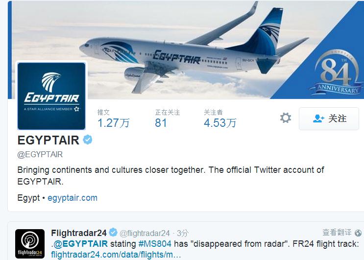 据埃及航空公司官方社交媒体介绍,失踪飞机编号为MS804,于巴黎当地时间晚上11:09分起飞。