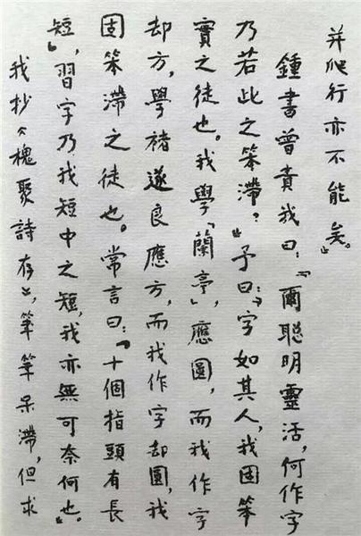 杨绛说,我抄《槐聚诗存》,笔笔呆滞,但求横平竖直而已。这句是谦虚的话,却也是坦诚的话,当然也是有用的话。假如一个百岁老人不求横平竖直,反倒去玩技巧,?;ɑ睿钦媸强栈畎偎炅?。