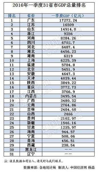 31省份一季度GDP排行出炉 东三省增速排名仍垫底