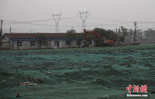 资料图:2015年11月25日,北京市召开市委十一届八次全会,决定北京市各市属行政事业单位,将在2017年整体或部分迁入北京通州行政副中心。目前行政副中心的行政办公区所在地,通州区潞城镇郝家府村的拆迁工作已经完毕,核心区建设已全面展开。图为11月11日,郝家府村已经被绿色网罩笼罩?!≈行律缂钦摺≌藕啤∩?/p>