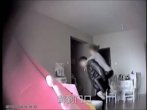 举报网帖配发了一条1分21秒的视频,视频呈现了三个场景:一名中年男子穿着睡衣在房间里走动;一名女子穿睡衣及穿衣的过程;一名男子背着一名女子出门。这段被剪辑过的视频显示,男子和女子所在的房间内特征一致。