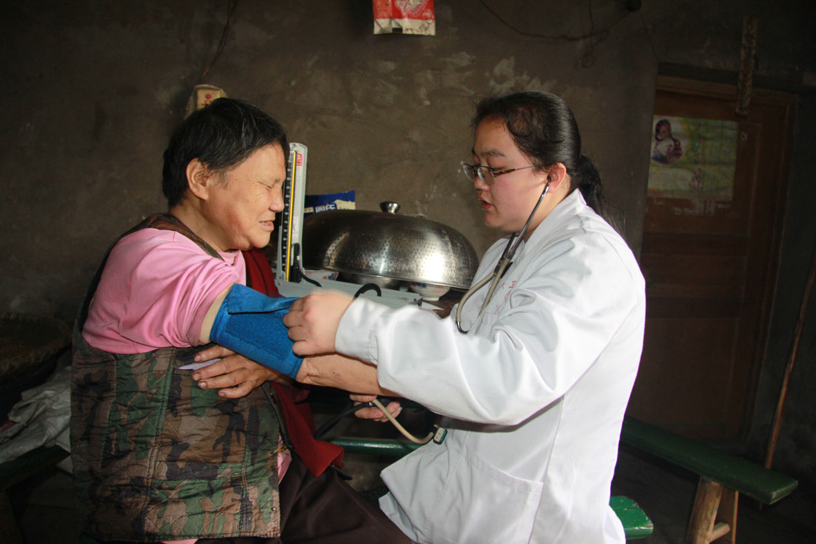 李菊洪上门为双目失明的邓玉琼老人量血压