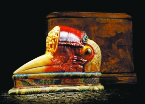 随着文玩市场的发展,更多的人知道了“一红二黑三白”这三种动物制品,“红”是鹤顶红,也就是盔犀鸟的头骨,“黑”即犀牛角,“白”指的是象牙。因为涉及珍稀动物?;?,所以这三样成了文玩市场地下交易的???。