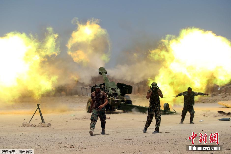 图为伊拉克军队进行猛烈炮击。