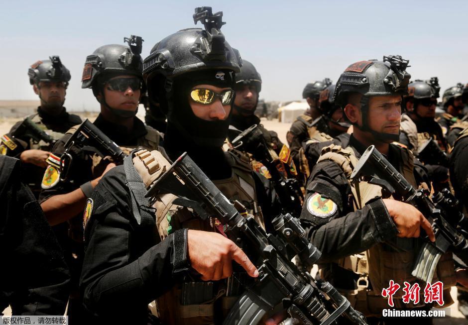 图为伊拉克反恐部队29日在费卢杰附近集结待命。