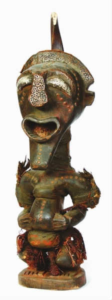 在不少非洲木雕上面,赵宝培也总能找到一些中国元素的影子。比如科特迪瓦的“不看、不听、不说”三个木雕人像,竟然对应中国《论语》“非礼勿视,非礼勿言,非礼勿听”。从赵宝培的收藏中发现以此为主题的木雕还不止一两件,可能这是他们经常创作的一种题材?;褂蟹侵薨婷派?、土地神、送子观音等。例如一尊木雕雕像,是被供奉在古代刚果人用茅草搭的一个棚里, 放置于村庄的入口,用于保佑全村非洲人的平安(类似中国的“土地公公”);一尊女性木雕雕像是用来祈子,相似于中国传统文化中的“送子观音”; 一对原本放置于部落酋长家门口的铜制雕像,可以抵御邪物的侵入,这与中国传统文化中的“门神”无异。去年,赵宝培又于美国纽约苏富比非洲艺术品拍卖中拍得一个科特迪瓦套头面具——一个非洲艺术化处理了的中国龙头。