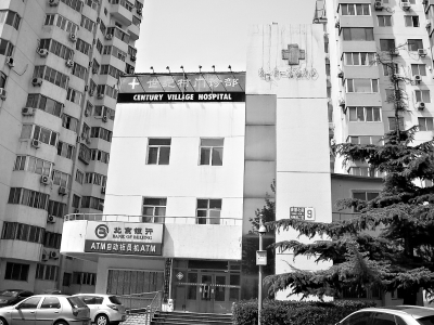 5月23日,小区居民带领记者在世纪村小区东区的西北角找到了这座门诊部。那是一座独立的3层小楼,建筑面积至少七八百平方米。房顶上立着“世纪村门诊部”的广告,一个已经褪了色的红十字还挂在楼房外立面的右上角,地址牌上写着育慧北路8号院二区9号楼,一层还有一家银行自动柜员机的灯箱广告。