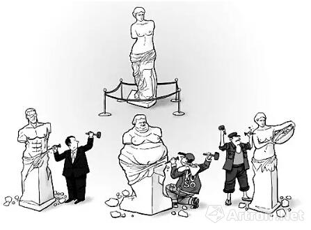 从公布的一些“山寨协会”来看,并不能真正阻止他们的再生,事实上,各种名头的“野鸡画院”已经在野蛮生长,变种的名人工作室、大师班、艺术馆等基本遍地开花。作为艺术爱好者,真是防不胜防,但是认准一条:凡是口气大的,那十有八九是“山寨”的后人了。