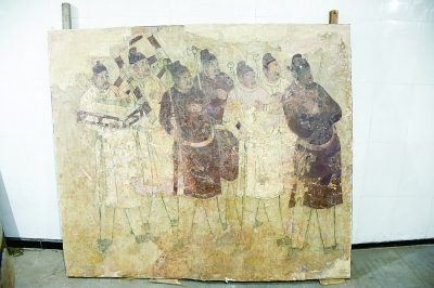 “与以往壁画?;に扇〉慕胰』蛘逄崛〉姆椒ú煌?,我们对该壁画采用了切割砖体的方法,?;ばЧ己?,为墓葬壁画的保护探索了另一种方法。”磁县文物旅游体育局副局长李江说。李江介绍,该壁画出土于宋初大将韩令坤墓葬。2014年初在磁县磁州镇西来村西北溢泉湖北路施工现场取土时发现一座古墓,该墓坐北朝南,平面呈方形,由墓道、甬道、前室、中室、后室及耳室组成,在前室出土一块青石墓志,墓志盖上楷书“南阳大王墓志”,经考证该墓主人为北宋大将韩令坤。由于该墓葬早期破坏严重,墓顶、墓壁坍塌。但可喜的是,在甬道东壁发现一组壁画,为出行图,保存基本完好,为研究宋代早期墓葬壁画提供了珍贵的实物资料。
