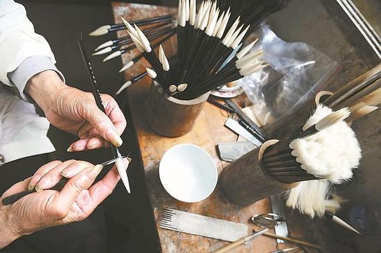 永青阁毛笔第五代传人81岁仍制笔