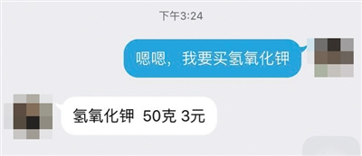 近日,落款为北京某中学的布告流传网络。布告称,该校初三一名学生向同学饮料瓶中投放网购化学品致该同学中毒住院。昨日该校证实,化学品为“硫酸铜”,受害学生已出院。记者发现,在网上可轻易联系到卖家购买危险化学品。卖家用“言酸”、“刘酸”等字眼代替盐酸、硫酸,可用快递邮寄。