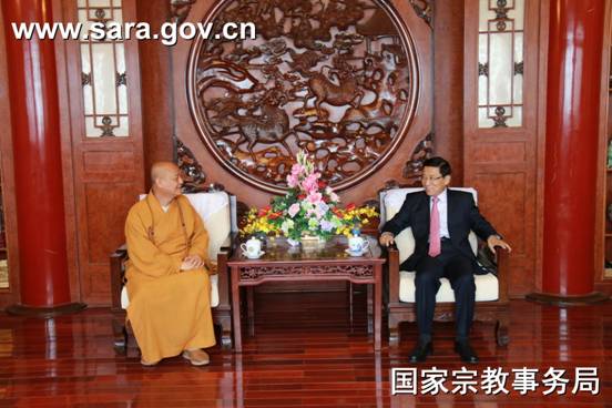 2016年6月2日下午,蒋坚永副局长会见了新加坡佛教总会副会长、新加坡佛学院院长广声法师一行。蒋坚永赞扬新加坡佛学院十年来,致力于佛教人才培养,为佛教事业的发展,促进国际交流、合作做出了积极贡献,并表示我局将一如既往地支持中国与新加坡的佛教友好交流与合作。四司副司长赵忠海、副司长梅光泉、外事司副司长薛树琪等会见时在座。