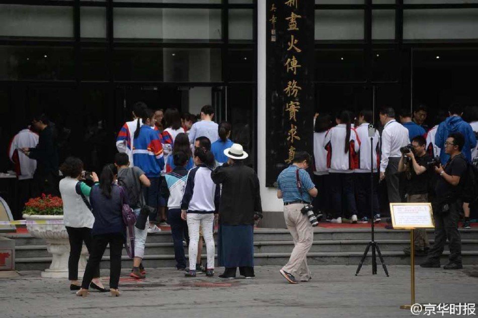 关键词:高考 北京考生 马褂 礼帽 进考场