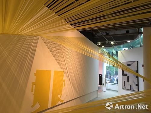 踏进上海当代艺术馆的那一刻,资深漫迷可能就“懵”了。近百条柠檬黄色缎带被绷直地悬在半空,它们被分成几片区域,相互交错,与墙面形成锐角,最高离地两米有余,最低不过1米。要看下一件作品,观众必须俯身穿越?!罢夂投泻喂叵?”预览当日,一位记者低声和身边人讨论。