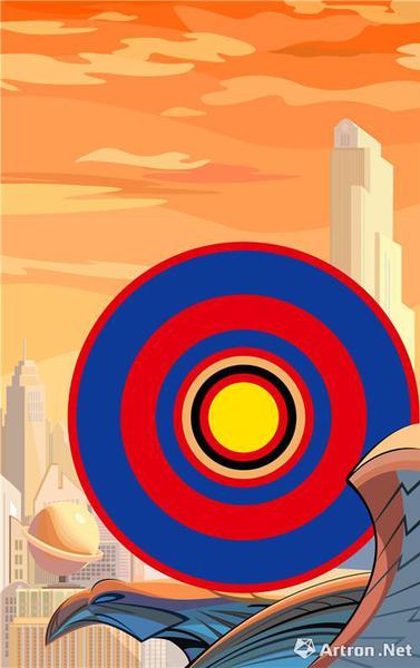 相较几位并不想被“动漫”局限的新锐艺术家,台湾艺术家陈怡洁在过去十年始终“拥抱”动漫美学,从绘画到装置不断深入探索。陈怡洁历时十年的《函数色彩》最早始于读研时期。当时,她收集了300只毛绒玩具,并将部分玩具在塑料袋内真空压缩。那些变形了的玩具只剩下一片片难辨的色块,这让她产生创作灵感。起初,她抽取小熊维尼、跳跳虎等角色的色彩,完成相对理性的矩形色块。之后,她以同心圆代替矩形,读取蝙蝠侠、蜘蛛侠、超人等漫画人物的颜色,推出《超人们》和《超能救世主》系列。针对代表不同角色的同心圆,陈怡洁为其设定合适的场景。比如她用广角镜头传达蜘蛛人在高空摇摆移动的特质,红黄相间的闪电侠则像一股霹雳,叱咤在雷电交加的场景中,飞天小女警则弥漫在充满童真的粉色世界。