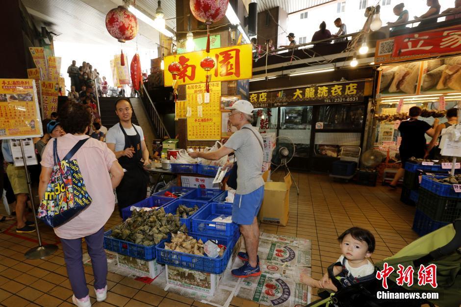 6月8日,台北市具有悠久历史的南门市场内,排队买粽子的民众从地下一层延伸至地上一层的路边。9日是端午节,台湾民众将迎来4天的假期。许多民众在节日采购粽子。台湾的粽子种类繁多,仅依食材分类,就有干贝粽、豆沙粽、臭脚粽(含臭豆腐)、肉粽、蛋黄粽等数十种。中新社记者 陈小愿 摄