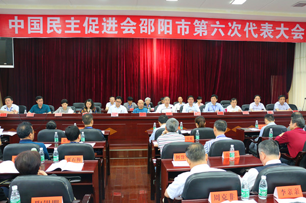 6月3日,民进邵阳市第六次代表大会召开。来自全市民进23个基层组织的77名代表参加大会。湖南省政协常委、民进湖南省委会专职副主委马石城,中共邵阳市委常委、市人民政府副市长东·华尔丹,邵阳市人大副主任曾东楼,邵阳市政协副主席李放文,市政协副主席,市工商联主席蒋科荣,民建邵阳市委主委蒋志南,农工党邵阳市委主委毛学雄,九三学社邵阳市委主委晏丽君等领导出席开幕式。