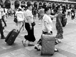 昨天是端午小长假最后一天,许多外出游玩的人返回京城。图为北京站前广场的返京客流。首席摄影记者 吴宁/摄