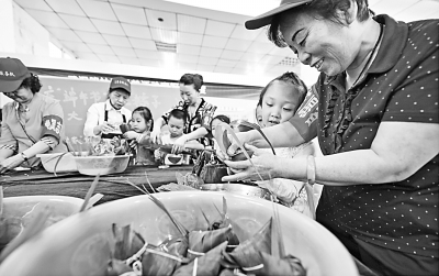 中华文明绵延数千年,形成了自身独特的文化传统和价值体系。图为端午小长假期间,河南省洛阳市涧西区的志愿者和社区小朋友一起包“爱心粽子”,送给辖区贫困家庭及空巢老人?;普吧?光明图片