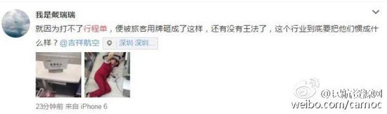 随后,@吉祥航空 官微发布消息称,关于网传吉祥航空深圳机场柜台工作人员被殴打一事,吉祥航空已经启动紧急调查程序。我们严厉谴责一切伤害工作人员个人权益的行为,吉祥航空将尽一切合法手段保护员工的合法权益!严厉谴责。