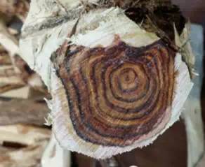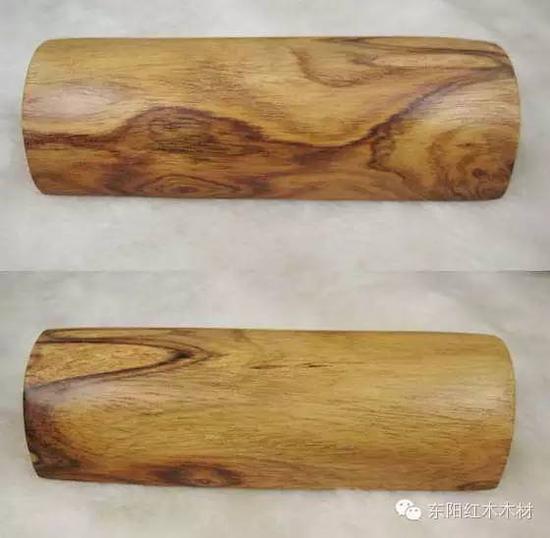 目前新料因为生长周期短,所以它的边材和芯材大都颜色浑浊、木质疏松,油性小且分布也不均匀。见下图: