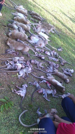 据了解,因为当时猴子们正在树上睡觉,来不及逃跑,被大树压在下面。从图中来看,有数只猴子宝宝也在其中,场面惨不忍睹。