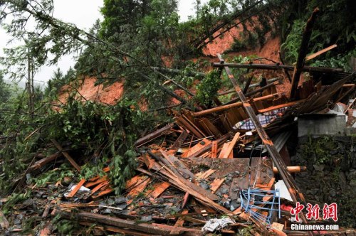 6月15日,贵州省锦屏县钟灵乡遭受强降雨袭击,房屋被滑坡掩埋。 中新社记者 贺俊怡 摄