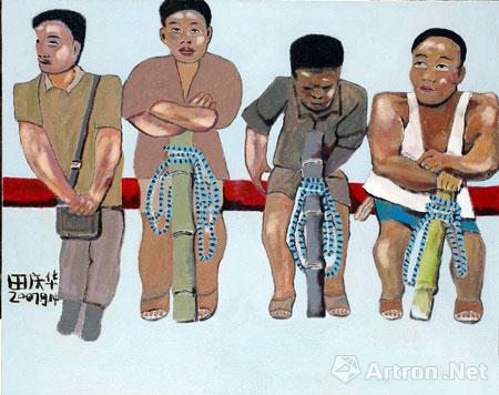 二十多年前,田庆华只身离开重庆万盛区青年镇更古村,他想“凭着一身好力气,到城里打工碰碰运气”。一个偶然的机会,田庆华成为四川美术学院食堂的勤杂工,也从此和画画结下了不解之缘。这一身份的转变,源于一张学校里招收模特的告示。“我不知道是干嘛的,觉得很轻松,一个月能赚140元,比当勤杂工90元强?!倍笠蚝⒆佣潦椤⒕醚沽Υ?,他瞒着家人当了3年人体模特。为挣钱,其余时间,田庆华就当“棒棒”。