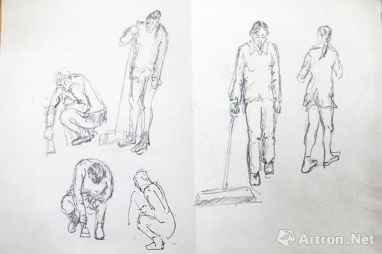 吴世俊的是渭南人,偶然的机会在美院当了一名保安。在美院浓厚的艺术氛围下,他拿起了画笔,把自己尘封了30多年的爱好重新捡了起来。从走路路过的学生到远在新疆当兵时的记忆,都成了他笔下的素材。有机会他还会到教室里蹭课听。2015年,他的速写画在网络走红,网友纷纷感慨高手在民间。