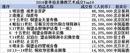 2016春拍佛教艺术TOP10 (截至2016年6月15日 不含海外拍卖数据)