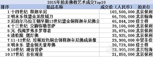 2015年佛教艺术TOP10 ( 不含海外拍卖数据)