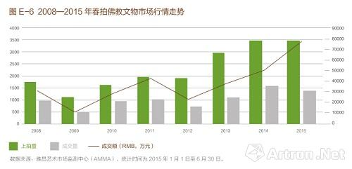 北京翰海拍卖有限公司佛像法器部经理柏漫林在去年接受雅昌艺术网专访时曾给出一组数据:“2006 年国际佛教艺术拍卖主要市场成交额 6.18 亿元人民币,2013 年成交额为 9.5 亿元人民币。而2006 年国内佛教艺术品拍卖成交额仅为 1.23 亿元人民币,2013 年为 4.42 亿元人民币。2006 年—2013 年,全球佛教艺术市场增长 56%,中国佛教艺术市场增长 259%,这期间,中国佛教艺术市场份额占全球比例由 20% 增长至 47%。此组数据统计来源于佳士德伦敦、香港、纽约,苏富比伦敦、香港、纽约,以及国内的嘉德、保利、匡时、翰海?!庇纱丝杉泄诘厥谐≡诜鸾桃帐跖穆舻姆荻罨竦么蠓忍嵘?。业内人士预计,因为国外尤其是欧洲还存在大量生货,导致海外市场还占有很大比重,但是购买力量终究在国内,所以随着本轮行情的上涨,促使越来越多的东西得到回归。市场“东归”已然成为必然的趋势。