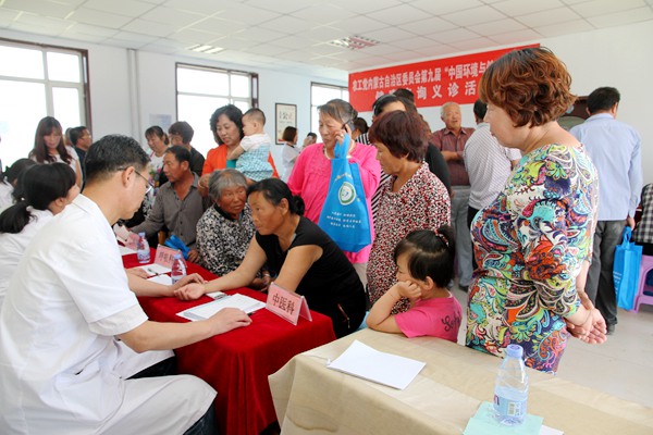 启动仪式后,来自内蒙古自治区国际蒙医院、内蒙古医科大学附属人民医院、呼和浩特市中蒙医院的10余名农工党党员医疗专家,为章盖营村的村民进行了心内科、妇产科、中医科、蒙医科、消化内科、呼吸科的健康咨询与义诊。他们利用一个上午的时间为章盖营村的村民免费进行心脏检查、妇科检查、血压血糖检测、B超的检查、中医诊断、蒙医诊断,发放常用药品,耐心解答村民的咨询并进行健康知识宣传。本次义诊有近两百名村民前来就诊,进行心电图、B超检查百余次,取得了良好的社会效益和宣传效果。