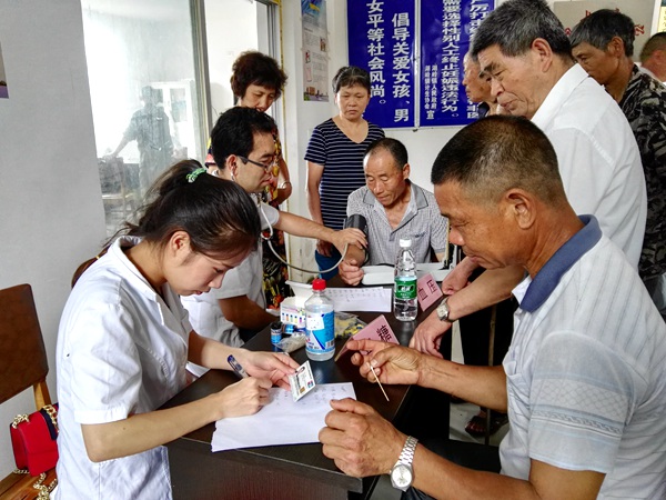 为了给偏僻山村的村民解决一些实际问题,医生专家们就地取材,在村民中心为村民查体看病诊治,免费测血压、测血糖、讲解预防疾病的常识。78岁高龄的血液科专家胡理明主任医师,精神饱满,在近两个小时内共为20多位老人查体看病,一点都不觉得累,这种敬业精神实在令人钦佩和感动??的皆旱牡ヒ嗌┦渴且晃谎缸?,亲自为老人量血压看病??的皆旱牧稚苹刍な亢茏ㄗ⒌匚迕癫裳饪崭寡?,从康宁医院带过来的50张血糖测试纸很快就用光了。