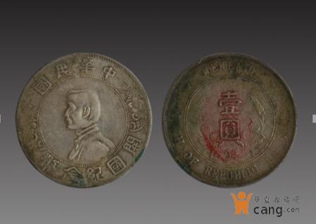图中的钱币现为豪隆展览平台所展示藏品。编号为:ZX160624,直径:3.8cm,正面中央为孙中山侧面肖像,边缘内上镌中文隶书体“中华民国”四字、 下镌“开国纪念币”五字、左右长枝花饰。背面中央为中文隶书体“壹圆”及嘉禾,边缘英文“中华民国”、“壹圆”,左右分列五角星(后改为六角星)。