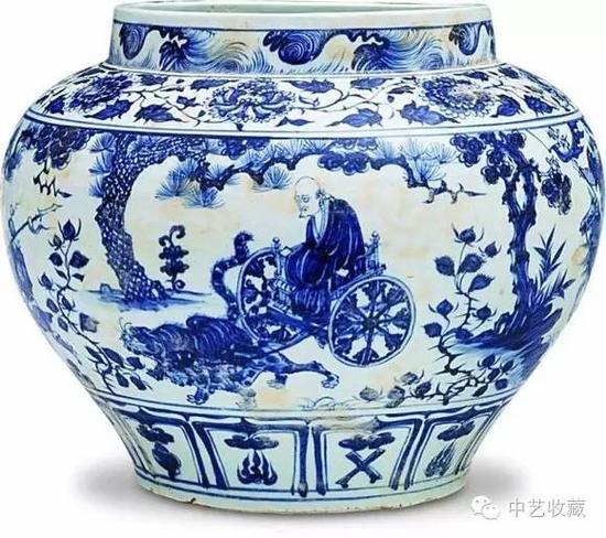 朱元璋推翻蒙元帝国,建立了大明王朝,却几乎全盘承袭了元代“匠籍制度”,由于祭祀,赐赉,贸易所需,开国之初,就在原“浮梁磁局”的基础上建立了御器厂,世称洪武官窑。洪武帝需要以瓷器换马用于战争,还要用瓷器扩大贸易和安抚邻邦。御厂烧造出器型硕大的青花、釉里红大盘、大碗、大罐,素朴雄浑,粗豪而不失风韵,形成了洪武官窑瓷器的独特风格。
