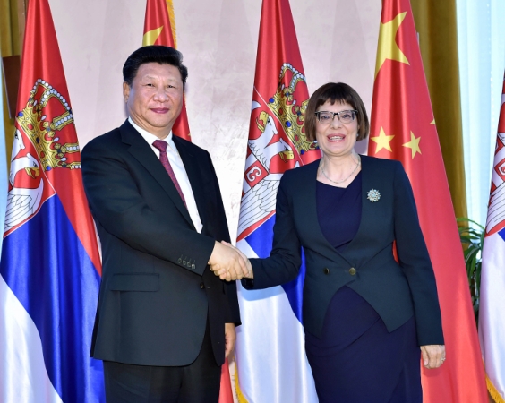6月18日,国家主席习近平在贝尔格莱德会见塞尔维亚国民议会议长戈伊科维奇。新华社记者李涛摄
