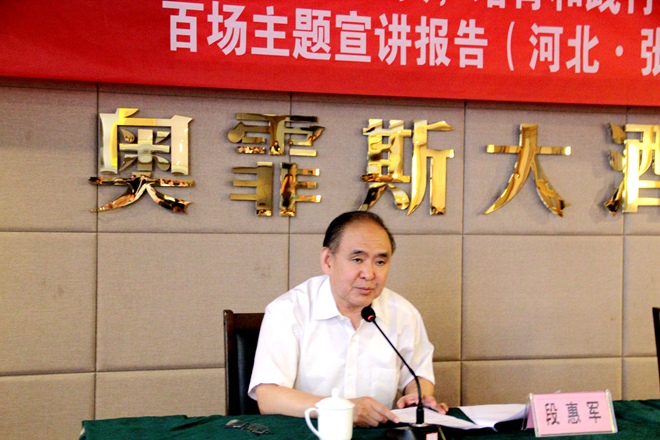 段惠军在讲话中指出,“走进基层、贴近党员,培育和践行社会主义核心价值观”百场主题宣讲活动对于激励广大党员弘扬正能量、焕发新精神、激发新干劲,切实推动坚持和发展中国特色社会主义学习实践活动深入开展具有重要的意义。全省宣讲活动自5月份于石家庄启动以来,在广大党员中产生了巨大的反响。通过宣讲,大家不仅深入学习了中共十八大、十八届三中、四中、五中全会和习近平总书记系列重要讲话精神,感受到了榜样的力量,而且深刻认识到培育和践行社会主义核心价值观不是简单的个人行为,它关系到农工党的形象,关系到农工党的责任和使命,关系到农工党的自身建设,作为一名农工党党员应该自觉主动地在培育和践行社会主义核心价值观的过程中发挥积极作用。