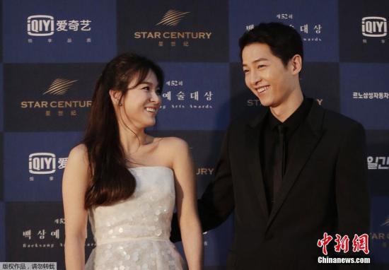 当地时间6月3日,韩国年度电视、电影盛事“第52届百想艺术大奖”在韩国首尔的庆熙大学登场,宋仲基和宋慧乔凭借《太阳的后裔》一举拿下人气大奖。宋仲基更在台上感动告白搭档宋慧乔“谢谢在我身边的宋慧乔”。