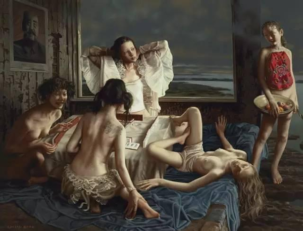 但78级同学并不该被视为美院的嫡传。其中佼佼者,杨飞云浸淫于泛古典美学,朝戈迷恋早期文艺复兴湿壁画传统,王沂东以照片式的精确(但不是照相现实主义)刻画乡土人物,施本铭、刘溢、夏小万虽作风各异(近期的夏小万作品引入三维与装置概念),但其技法与趣味,是巴洛克、浪漫主义和部分矫饰主义的混杂——远远望去,他们仍会被认作中央美院招牌性写实群体,可是此前美院各届师生,从未出现78级同学的画风。