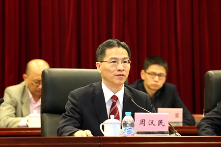 周汉民代表民建上海市委向大会召开表示热烈祝贺,对民建徐汇区第八届委员会所取得的成绩给予充分肯定,并提出三点希望:一、加强思想建设,坚定理想信念,努力建设高素质参政党。要继承和发扬民建的优良传统,始终与中国共产党肝胆相照、荣辱与共。要深入学习领会中共十八大、十八届三中、四中、五中全会和习近平总书记系列重要讲话精神,深刻认识统一战线和民主党派在落实“四个全面”战略布局,坚持创新、协调、绿色、开放、共享五大发展理念中的重要作用。要扎实推进中国特色社会主义学习实践活动,引导会员履行职能、发挥作用、建功立业。要坚持以社会主义核心价值体系为引导,积极培育和践行社会主义核心价值观,内化于心、外化于行,通过深度理论开掘、细致教育引导、广泛履行实践,不断深化落实。二、立足本职岗位,积极参政议政,助推徐汇经济社会发展。希望民建徐汇区委站在区域发展战略和全局的高度,聚焦“十三五”时期徐汇面临的机遇和挑战,立足本职岗位、结合发展实际、厚植发展优势、破解发展难题,围绕产业经济、科技创新、文化发展、社会事业、生态建设等课题,充分发挥人才优势和会员积极性,多建睿智之言,多献实用之策。三、夯实组织基础,凝聚政治共识,着力加强自身建设。希望新一届徐汇区委要全面推进和加强领导班子建设,坚持问题导向,勇于责任担当,通过自我净化、自我完善、自我革新、自我提高,理论联系实际,密切联系会员,脚踏实地开展工作。夯实组织基础,深入联系基层,激发会员的凝聚力和向心力,从多党合作和民建事业持续发展的高度,建设高素质的后备干部队伍。要在“人才强会”上多下功夫,积极主动地吸收和发展高层次、高素质的代表人士入会;要以制度建设为保障,建立健全会内决策、执行和监督机制,发扬民主、注重团结,树立风清气正的良好风气,推进自身建设的制度化、规范化和程序化,把自身建设提升到新的水平。