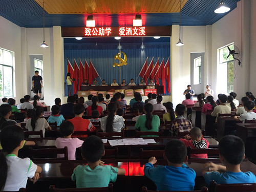 6月17日,致公党湖南省委专职副主委向佐谊带队赴怀化市靖州县文溪学??沽酥Щ疃?/p>