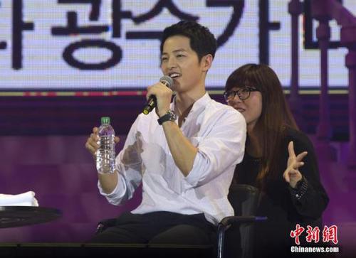 5月14日,北京站“2016宋仲基亚洲巡回粉丝见面会”在国家奥林匹克中心体育馆举行,韩国艺人宋仲基在见面会上与粉丝进行互动,引发粉丝阵阵尖叫。宋仲基还将奔赴武汉、广州、深圳、上海、香港、成都、台北,完成此次大中华区八座城市的粉丝见面会。中新社记者 刘关关 摄