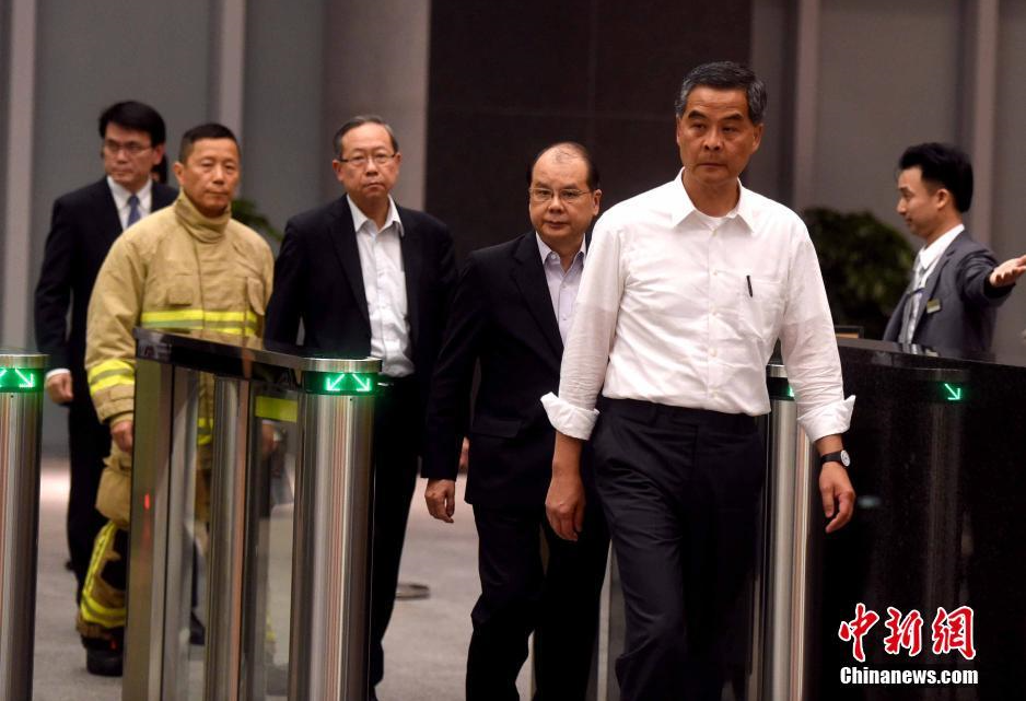 6月23日晚11时30分,香港特区行政长官梁振英就九龙淘大工业村火灾及引起相关问题举行跨部门记者会。淘大工业村一迷你仓库发生四级火,截止24日凌晨1时,焚烧超过60小时仍未扑灭,已有两名消防员在本次火灾中殉职。 中新社记者 张宇 摄