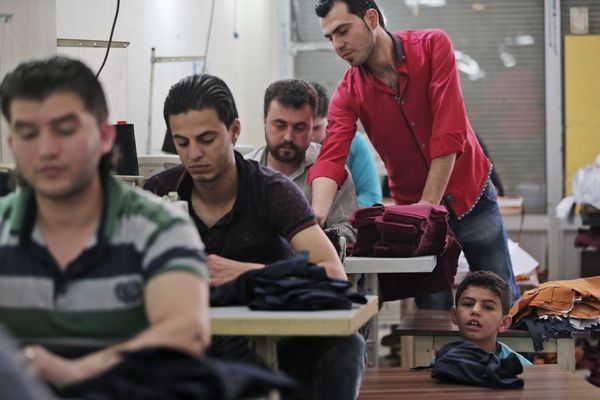 6月2日,土耳其加济安泰普一家服装工场,叙利亚难民在工作。